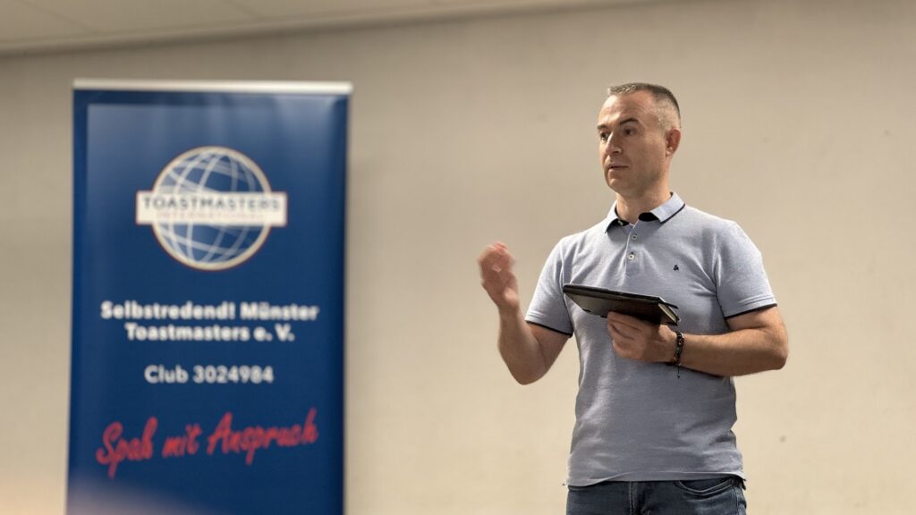 Manuel erzählt von seinem persönlichen Weg, wie er durch Toastmasters selbstbewusster wurde, welche Rolle das Pathways-Programm dabei spielt und welche Ziele er sich aktuell steckt – sowohl persönlich als auch für den Klub.