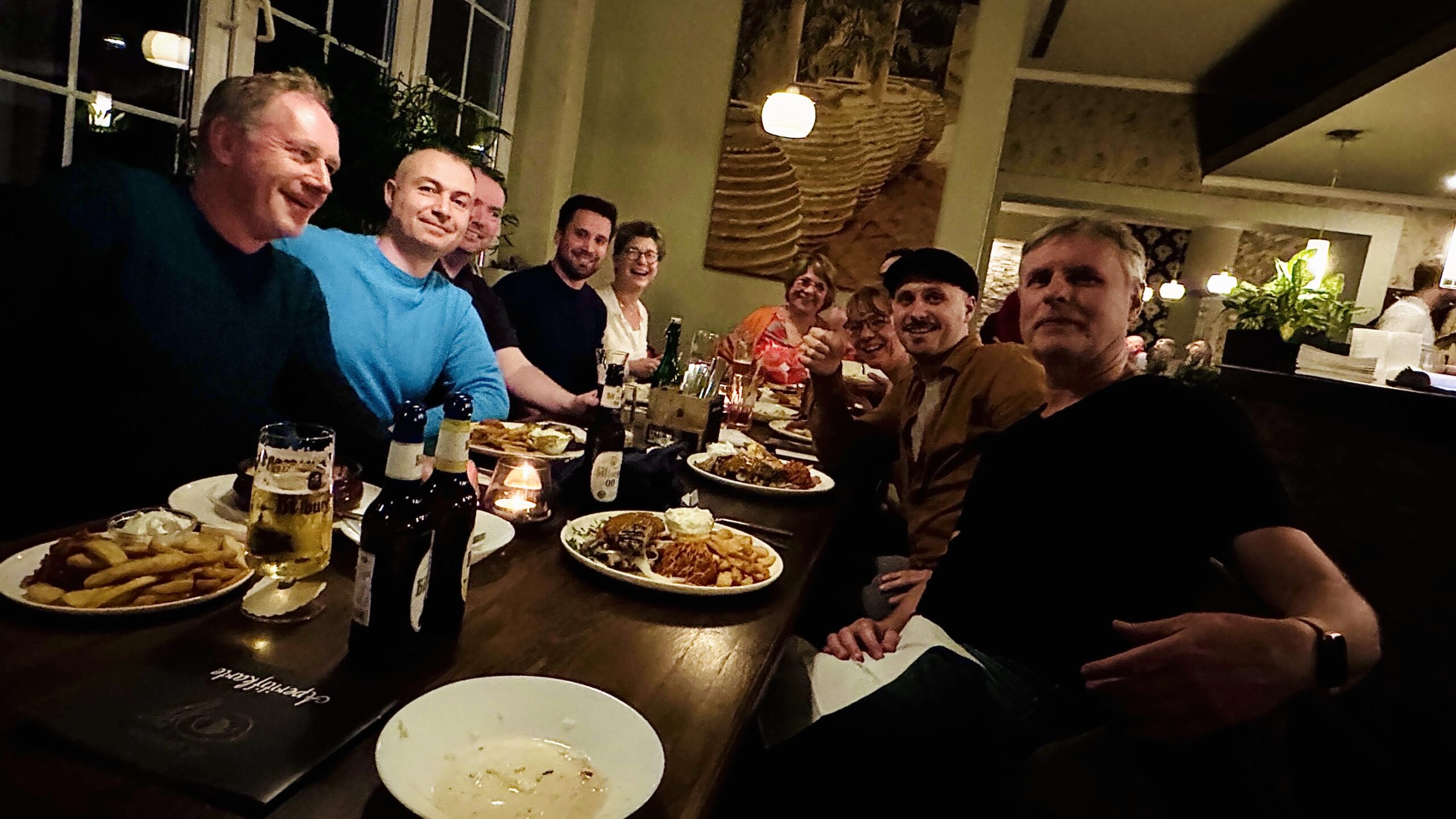 Weihnachtsfeier. Anfang November. Beim Griechen in Münster. Fehlt eigentlich nur noch, dass wir in einer alten Geheimsprache reden, oder? Genau das haben wir getan!